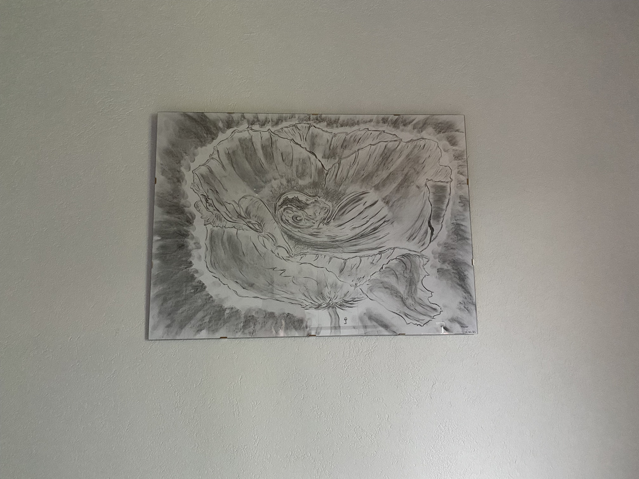 La poésie est de ma composition, elle insuffle vie au dessin. Elle a aussi une double connotation.